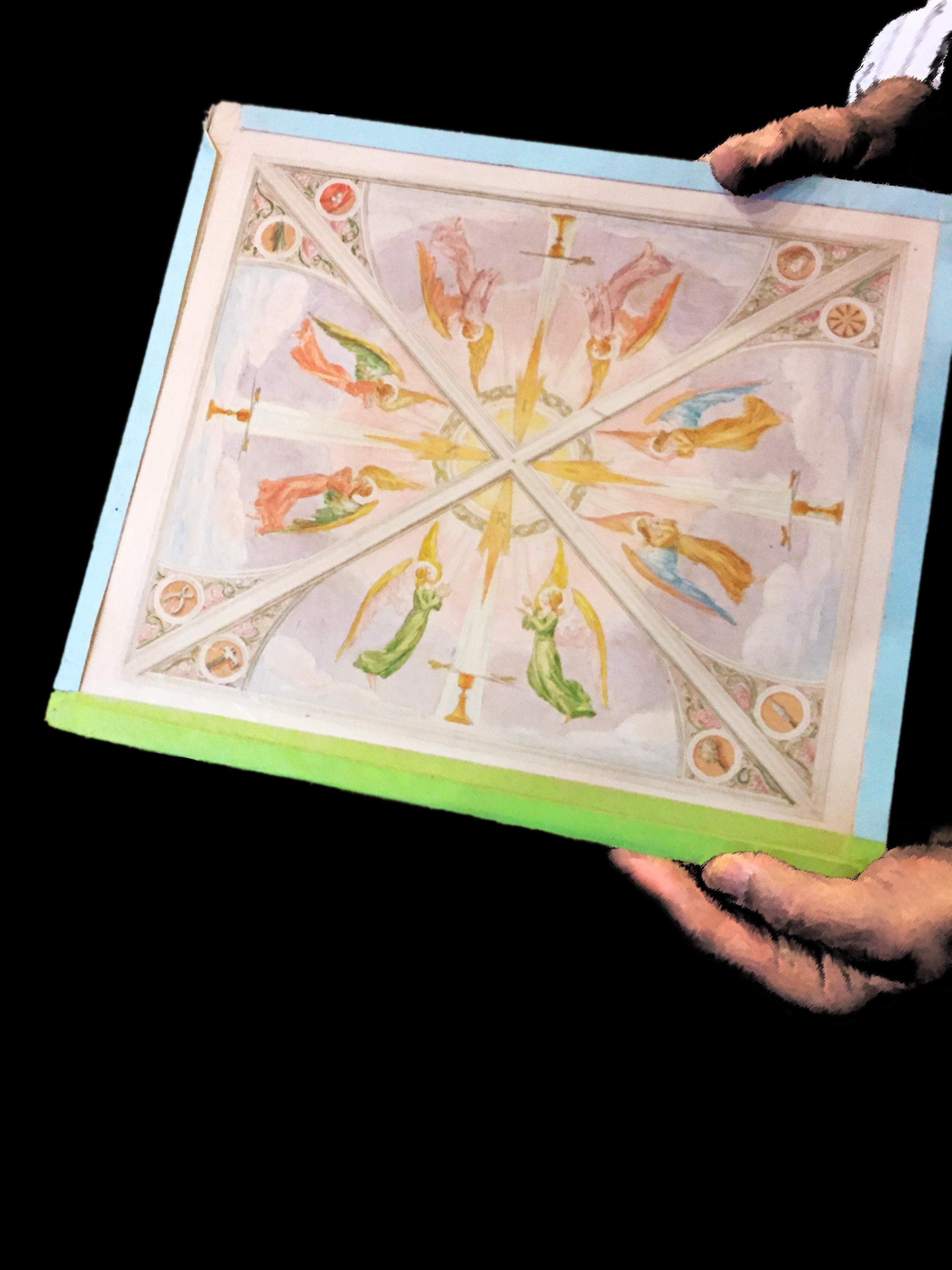 Up the hill, you can see St Anthony’s church, a keystone of the Italian community since 1913. One of its striking features is its beautiful artwork, and here you can see an original watercolour sketch by Guido Nincheri of one of the mosaics.